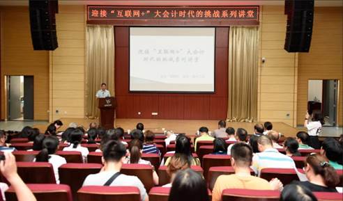 为了深入推进“双一流”建设工作,深化专业教学改革工作,迎接“互联网+”大会计时代对会计专业教学的挑战,增强广大教师适应新时代的使命感、紧迫感和危机感。2018年6月6日下午我院在学术报告厅成功举办“迎接‘互联网+大会计时代’的挑战”系列讲堂,本次活动由科研处主办、会计二系承办,科研处处长张伟主持。范忠副院长出席并讲话,他指出“大智移云”时代到来,高科技创新技术日新月异,在引起我们思考、反思和对未来美好憧憬的同时,我们更应意识到面临的冲击和挑战,我们职业教育工作者要用全新的理念、开放的心态,创新的模式迎接财务领域这场巨大变革。