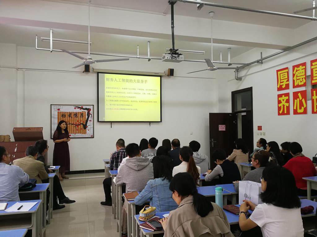 随着“互联网+大会计时代”的到来,信息技术在会计领域得到广泛的应用。2018年5月9日下午5:00,会计二系在教学楼415会议室举办了“迎接‘互联网+大会计时代’的挑战”系列讲堂之一“财务机器人的发展与现状”讲座,本讲由会计二系副教授张海霞主讲,会计二系全体教职工、部分学生代表参加了此次讲座。