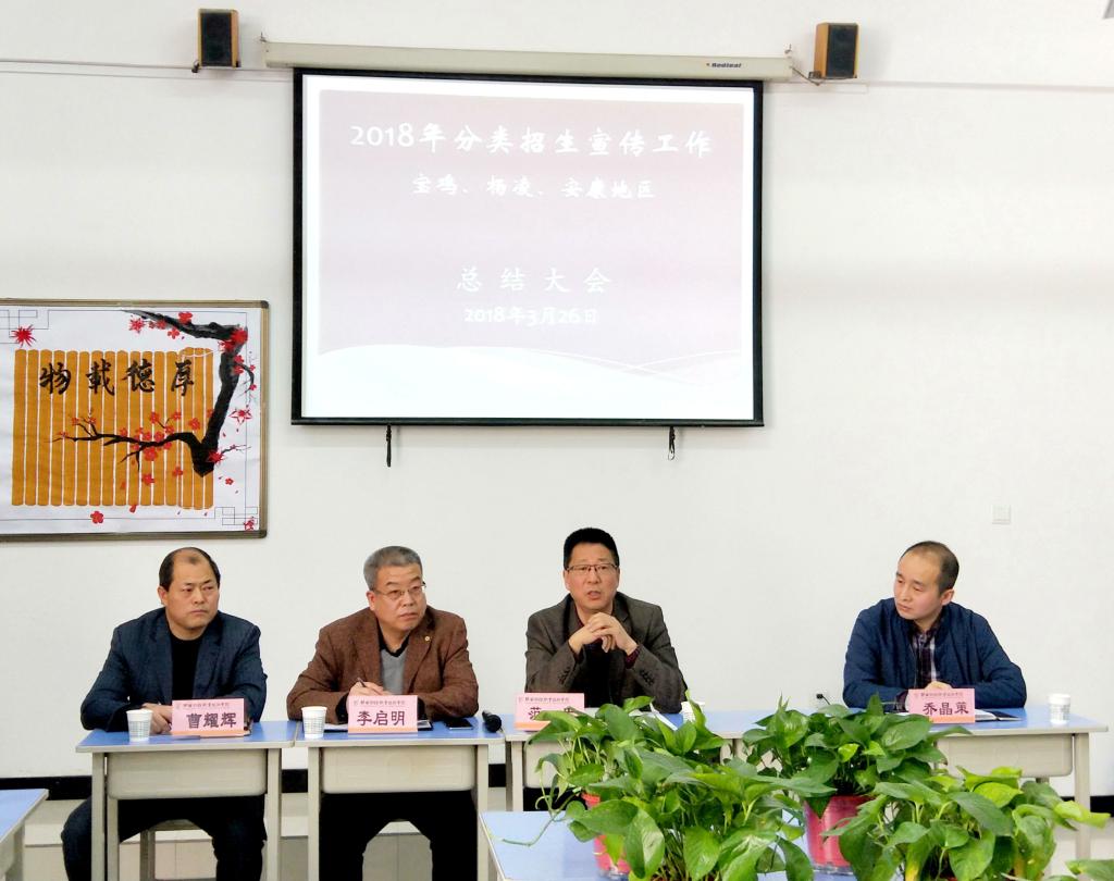 按照学院分类招生工作安排,会计二系于2018年3月26日召开安康、宝鸡、杨凌片区分类招生工作总结会。参加会议的有招生宣传工作联系指导领导范忠副院长,会计二系结对宣传的党群口、行政口及南校区负责人及参与分类招生工作的全体人员。会议由会计二系专职副书记乔晶策主持。