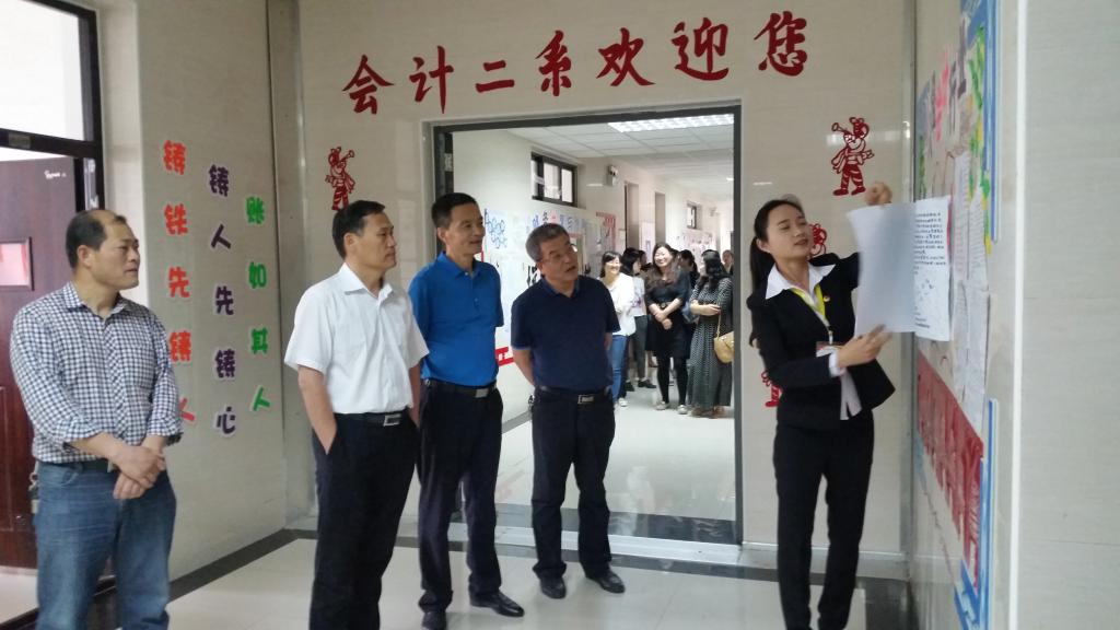 2017年5月24日下午,学院副院长刘晓玉、党委副书记兼纪委书记刘文雅、副院长于新和、副院长张秦龙参观会计二系“会计文化长廊——手抄报展览”。