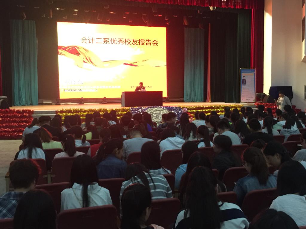炎炎夏日,天降小雨。5月15日下午4时会计二系专职副书记乔晶策与全体辅导员,经金系电商与物流专业及会计二系近1000名学生在学院大礼堂聆听优秀校友报告会。