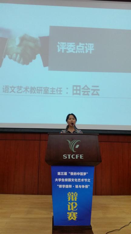 赛后,语文艺术教研室主任田会云对比赛进行了精彩点评,会计二系主任李启明宣布了比赛结果,学院党委副书记兼纪委书记刘文雅做了重要讲话。刘书记首先对本次辩论赛取得圆满成功表示热烈祝贺,对承办本次活动付出辛勤努力的所有老师和同学表示衷心的感谢,对获奖的团体和个人表示热烈的祝贺!随后,刘书记从五个方面对本次比赛提出了充分的肯定与高度的赞扬。一是领导重视,参与度高。整场比赛座无虚席,各系专职副书记亲临现场指导参与,各系认真遴选,选手水准较高。二是主题鲜明,贴近现实。三个辩题都比较贴合目前大学生的思想状况,符合当今社会的基本形式,大学生在辩论的过程中不断成长学习,使真理越辩越明晰。三是女生铿锵有力,男生洋洋洒洒。女同学辩论中铿锵有力,真情使然,语速飞快,盛气满满;男同学辩论中才思敏捷,侃侃而谈,提问尖刻,对答如流,充分彰显了我院大学生较高的综合素质。四是大胆自信,人才济济。通过此次辩论赛,为我院发掘了不少口齿伶俐,思维敏捷的辩手和组织协调能力较强的大学生,辩手们在辩论场上大胆自信,舌战群儒的优异表现,更是让我们看到了陕财院的人才济济,后继有人。五是组织严密,配合紧凑。整场比赛全场秩序良好,能够从大处着眼,小处着手,注重细节,组织严密,配合默契。最后,刘书记提出辩论赛给大学生提供了一个很好的历练平台,促使学生发散思维,提高口才,参赛过程比比赛结果更有意义,希望持续举办。