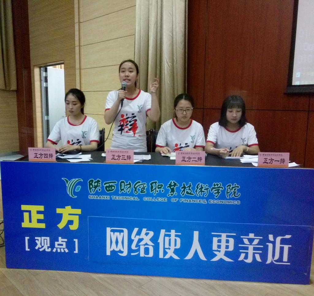 2017年5月11日下午16时30分,由学院团委主办,会计二系承办的陕西财经职业技术学院第三届“我的中国梦”大学生文化艺术节之“博学雄辩·谁与争锋”辩论赛总决赛在我院学术报告厅隆重举行。学院党委副书记兼纪委书记刘文雅、会计二系主任李启明、团委书记窦曼娟、会计二系专职副书记乔晶策、会计三系专职副书记张晓战、经济与金融管理系专职副书记王省军出席并观看了比赛。图书馆馆长崔斗、语文艺术教研室主任田会云、传统文化教研室主任王娟和宣传处张洁老师担任比赛评委。450余名师生共同观看了此次总决赛。