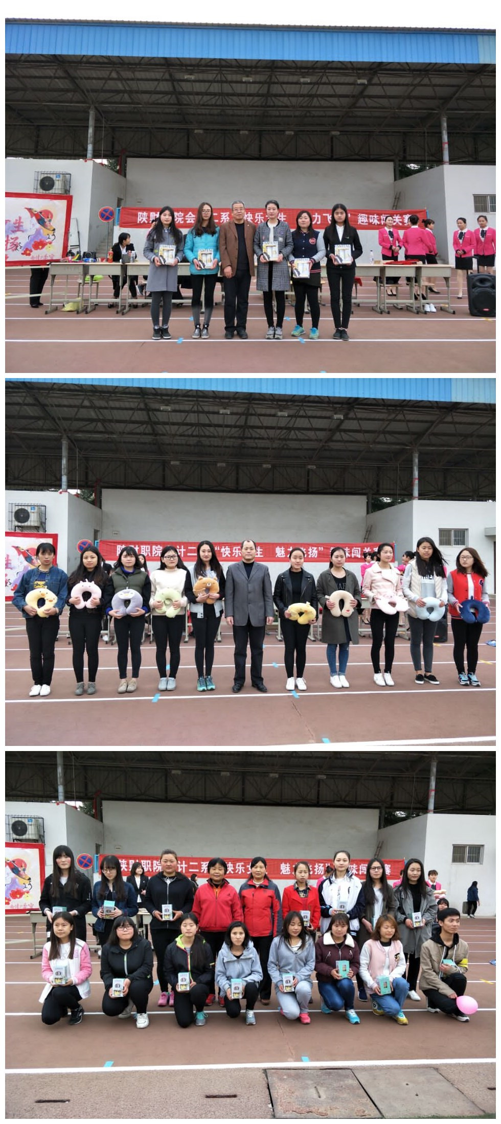 本次竞技闯关赛共分为四关,依次为挑战到底、企鹅漫步、你比我猜和齐心协力。参赛队员须协作配合依次闯过四关,用时短者获胜。随着一段激情动感的开场舞表演,趣味闯关竞技赛拉开了帷幕。会计二系副主任曹耀辉为大家宣读了比赛规则,学生会干部对比赛规则逐关演示。随后,会计二系主任李启明宣布趣味闯关赛正式开始,专职副书记乔晶策为比赛鸣哨开场。伴随着一声哨响,各队队员们身手矫健,团结协作,奋力闯关。挑战到底中,趾压板跳绳和生肖成语带来了脑力和体力的双重考验,魔力趾压板更是让老师和同学们体会到了全身过电的感觉。企鹅漫步中,各参赛队员憨态可掬,就连平日里课堂上严肃授课的老师,也变身为可爱企鹅,引得同学们的阵阵掌声和喝彩!你比我猜中,队员们用肢体语言诠释着不同的词语,让我们看到了参赛队员默契配合。最后一关齐心协力,队员们团体协作进行踢毽子接力,最后两人背靠背将气球挤爆,将团队精神体现的淋漓尽致。纵观整场比赛,高潮迭起,欢声不断,团队协作,师生同乐。