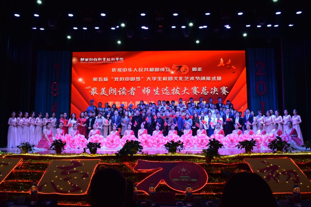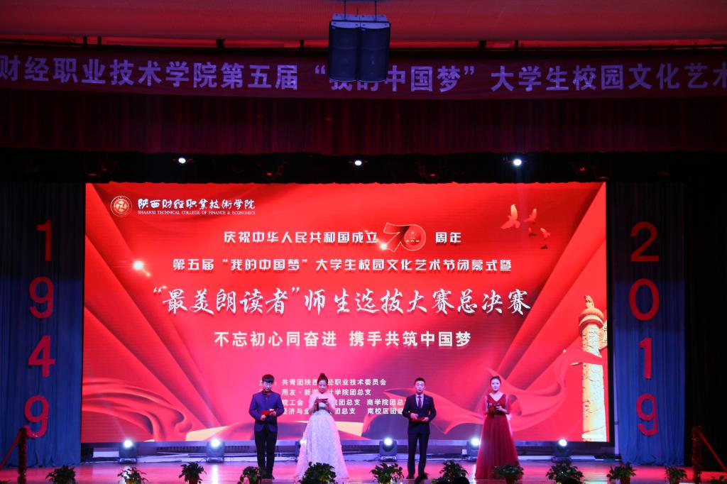本次闭幕式共分六个篇章,首先进行的是“最美朗读者”师生选拔大赛总决赛。经历初赛、复赛的激烈的角逐后,各二级学院及各处室的师生选手共计11支参赛队伍脱颖而出隆重登场。由商学院李可欣、周杨旭、仁亚静、邱航带来的《庆华诞数七十载,国逢盛世》抑扬顿挫、铿锵有力诵出了中国人民70年在社会主义的康庄大道上走得气势磅礴,铿锵有力,波澜壮阔!用友·新道会计学院刘萍带来的《周恩来》采用话剧的表演形式,朗诵选手与演职人员紧密配合,演绎出了周总理50多年革命生涯,26年总理任期,高风亮节,功勋卓著,呕心沥血,鞠躬尽瘁,和对祖国和人民的深情,现场观众与评委为之落泪。由经济与金融学院许斌、张欣瑞老师带来的《我爱你,我的祖国》深情地诵读无不让现场观众感受到祖国高山巍峨,雄伟的脊梁俯瞰历史的疯狂雨落。由管理学院连静、李红红、谢卫朋、刘丹老师带来的《读中国》高低起伏,抑扬顿挫让观众切身感受到古老的中国像一座山,千秋耸立气势巍峨,而今天的中国像一条河,万古奔流波澜壮阔。由南校区叶开欣、程宏涛、张星雨、杨泽怿带来的《丝路赞歌》读出了两千年前,先贤开辟的“丝绸之路”,几番兴衰,几度沉浮,更是诵出了新时代“一带一路”建设的伟大壮举,是沿线国家地区共同吟唱的一首新丝路长卷上最美的赞歌。由用友·新道会计学院王琪、蒲宁欣带来的《不忘初心,牢记使命》倾吐了一个政党的气概,彰显了共产党人的豪迈,当诵读至“不忘初心,牢记使命,任重道远,勇往直前。继往开来,开拓创新”时,全场观众与之高声齐呼,呐喊声音响彻礼堂无不让人激情澎湃,彰显了我院学子不忘初心牢记使命的责任与担当。由招就处王刚、人文艺术学院钱涌宁、用友·新道会计学院赵静、乔乐、孟琰峰老师带来的《美丽中国》作为压轴篇目,温柔、浑厚的声音如淡淡的墨痕,勾勒出气势磅礴山河如画的美丽中国,为“最美朗读者”的总决赛画上了完美的句号。
