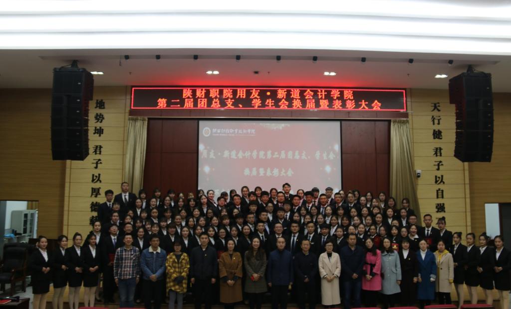 11月14日晚19点,用友·新道会计学院第二届团总支、学生会换届暨表彰大会在学院学术报告厅隆重召开。学院团委书记窦曼娟、学生处副处长贺适、用友·新道会计学院党总支书记乔晶策、全体辅导员及400余名学生干部参加了本次大会,团总支书记乔乐主持大会。