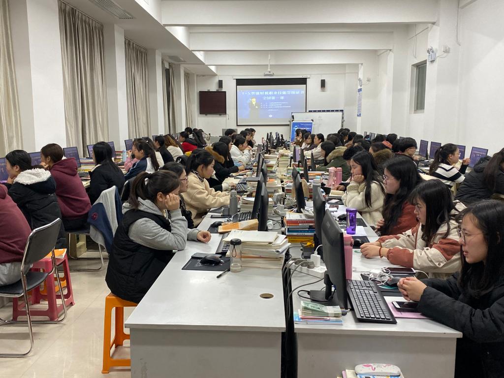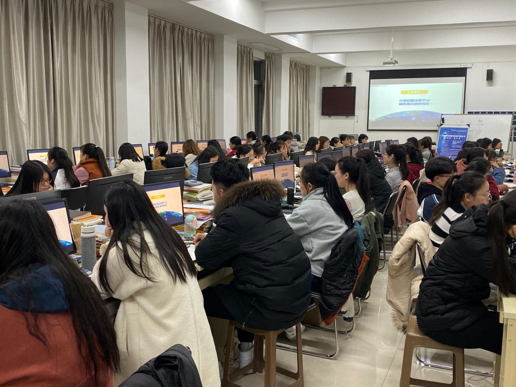 为推进落实教育部1+X证书制度试点工作,提升高素质劳动者和技术技能人才培养能力。继我校成功入选“1+X”智能财税职业技能等级证书第二批试点学校之后,用友·新道会计学院于12月2日晚19:00,组织近八十名学生通过一同观看线上直播课程的形式,于实训楼711教室与全国各试点学校进行同步培训学习。