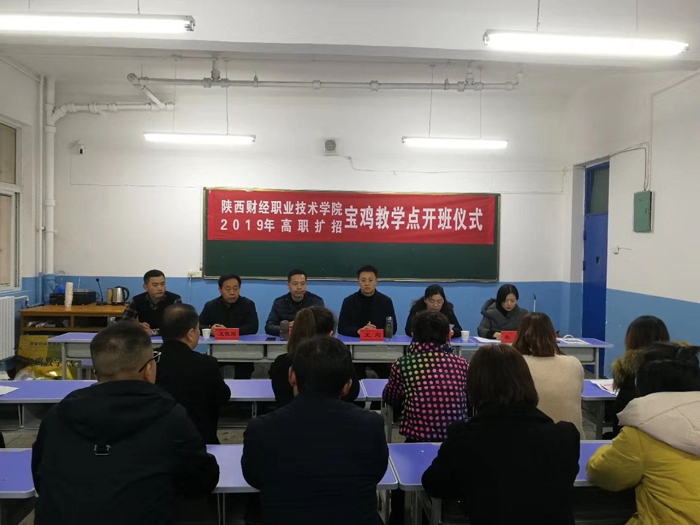 2019年12月14日上午,陕西财经职业技术学院2019级质量型扩招宝鸡教学点开学典礼在陕西省第二商贸学校举行。陕西财经职业技术学院招生就业处副处长王刚、用友·新道会计学院副院长缑宇英,陕西第二商贸学校副校长杜玉锁、教务科长王俊刚、招办副主任周传峰以及2019级宝鸡教学点新生出席开班仪式,开班仪式由陕西财经职业技术学院李迎主持。