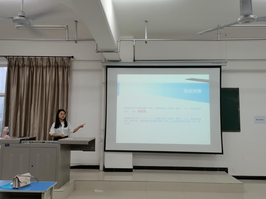 5月20日晚,用友·新道会计学院团总支组织会计学研社在综合楼327教室开展了以“专升本”为主题的经验交流会。据悉,5月17日至5月23日正值陕财职院毕业生就业促进周。21世纪是人才竞争激烈的时代,本次活动旨在帮助同学们充分认识普通高校全日制专升本考试,从而明确学习方向、增强学习动力,鼓励同学们更好地准备专升本。活动在筹备阶段,便吸引了广大同学的关注,报名人数空前,但由于场地有限,最终到场参加此次活动的学生共有150余名。活动由会计学研社指导老师郝颖主持。