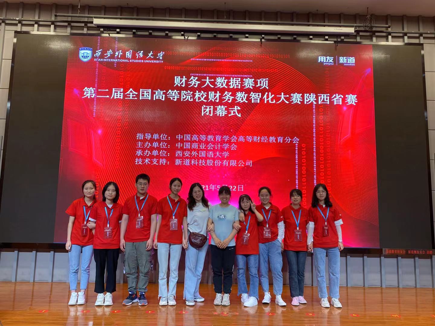 2021年5月22日,由中国商业会计学会主办,新道科技股份有限公司提供技术支持,西安外语学院承办的2021年全国高等院校财务大数据分析赛项陕西省赛,顺利举行。我院两支代表队伍荣获佳绩。