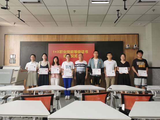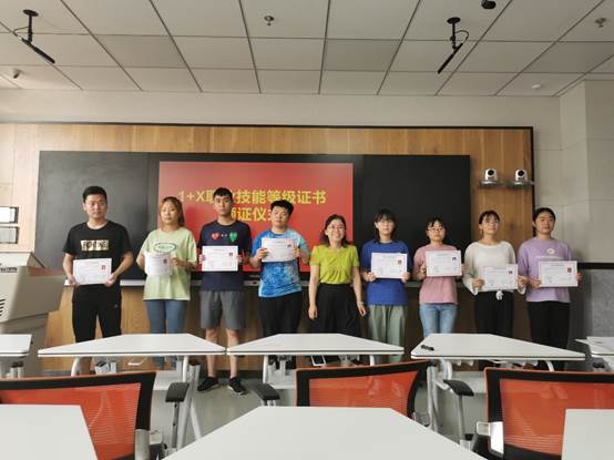 2021年6月10日下午,用友·新道会计学院在综合楼414智慧教室为参加 “1+X”财务共享服务职业技能等级证书(初级)考试、“1+X”智能财税职业技能等级证书(初级)考试并获得证书的学生举行了颁证仪式。用友·新道会计学院院长李启明、副院长缑宇英、会计信息管理系主任李迎、审计教研室主任高巧利等老师,及部分通过考试的学生代表参加了该仪式。