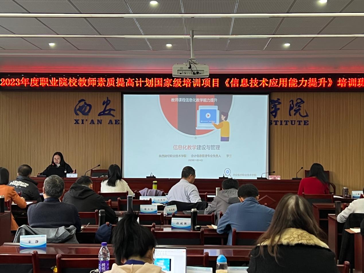 根据《教育部、财政部关于实施职业院校教师素质提高计划(2021—2025 年)的通知》(教师函〔2021〕6 号)和《陕西省职业院校教师素质提高计划“十四五”实施规划》及2023 年度项目实施方案,11.7——11.16 日由陕西省优质职教师资培养培训基地西安航空职业技术学院举办了 2023 年陕西省信息技术应用能力提升教师课程信息化教学能力提升”国培项目,我院任芳丽、罗兰两位老师受邀为参训学员进行了有关教育信息化的科普及技术应用讲座。