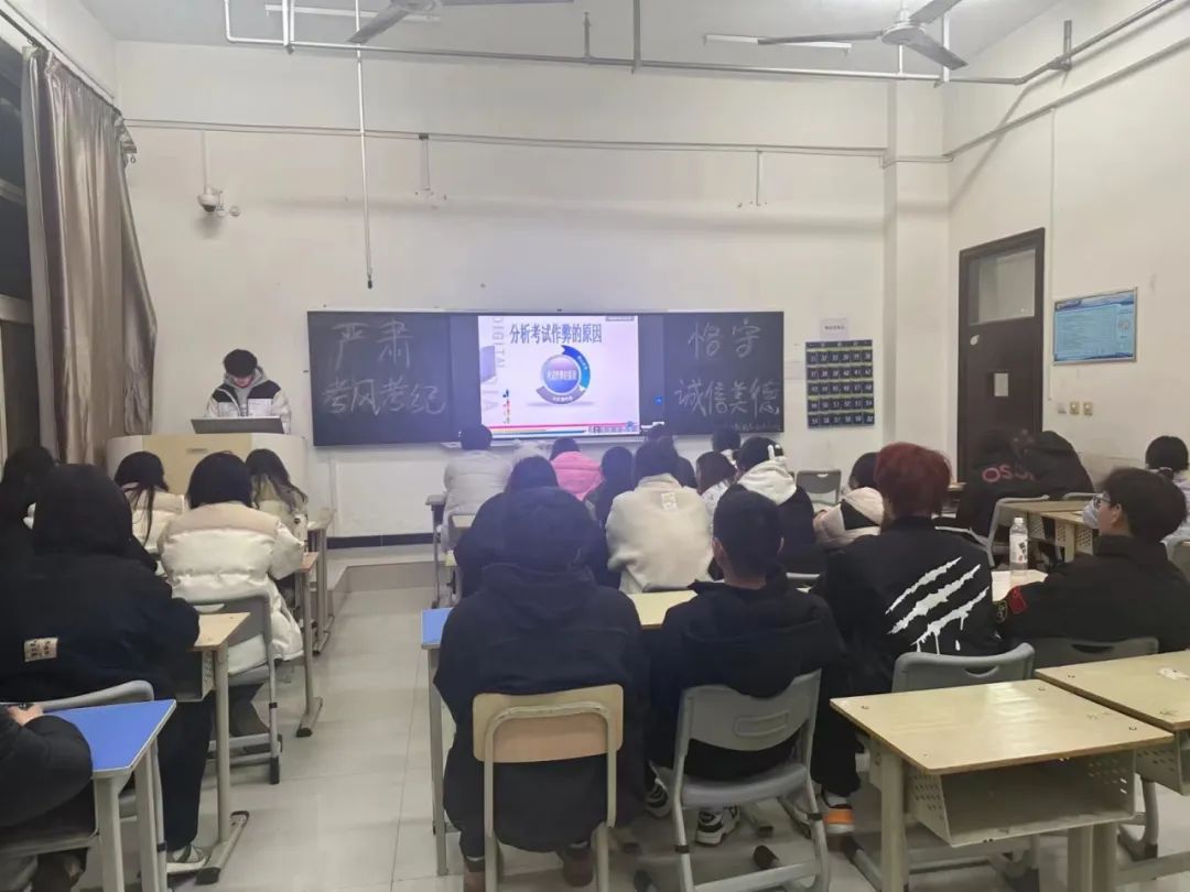 为进一步加强学生诚信考试教育,营造严肃和谐的考试氛围,构建良好的考试秩序,推进我院考风考纪建设,2024年1月2-3日,会计学院组织各班级召开了“严肃考风考纪,恪守诚信美德”主题班会。