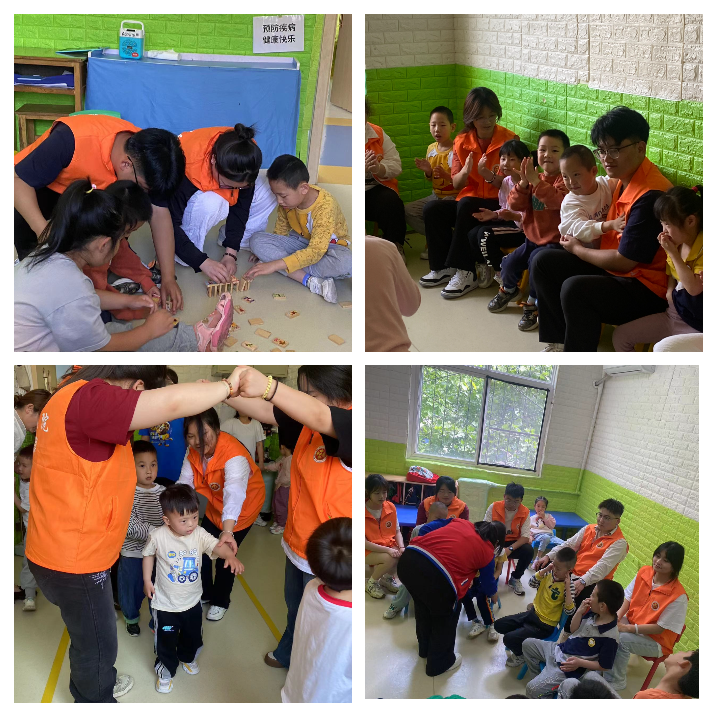 接着,志愿者带领小朋友们开展了“小车过山洞”游戏,帮助他们提升认知能力,学习他们数量、次序等知识,同时提升他们的身体协调能力和团队协作能力。游戏结束后,志愿者们与孩子们围坐在一起,开始了愉快的聊天时光。他们耐心倾听孩子的心声,分享彼此的故事,让这些特殊儿童感受到来自社会的关爱和温暖。