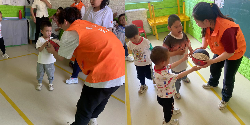 首先,咸阳康复教育学校段继娜老师向志愿者们介绍了特殊儿童近期的日常生活和学习情况。志愿者通过简单的游戏拉进了彼此之间的距离。通过游戏“篮球跳跳跳”,提升了孩子们的肢体协调能力和肢体表达能力。在游戏情节的贯穿下,满足了他们的自我认同的情感需求,让孩子们在轻松愉悦的游戏氛围中得到锻炼和发展。