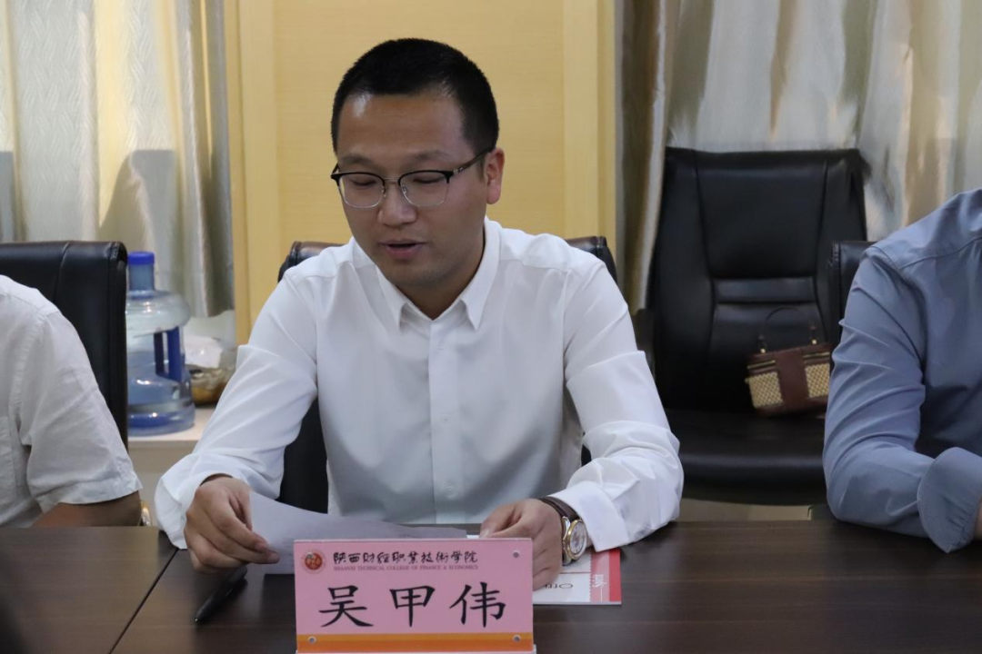 为强化专业内涵建设,培养复合应用型人才,会计学院积极以校企共建为抓手,积极推进校企合作课程联建。在学校整体部署及安排下,5月16日下午,会计学院召开财务经理BP业财融合实践管理项目启动仪式,并开展学生项目实践活动,充分利用行业教育资源,推动学院校企合作课程建设,持续深化协同育人机制。本次会议特邀陕西汇创鸿图企业服务有限公司总经理吴甲伟、营销总监曹富强、财税部念富成、信息支持部罗守彦、数字营销部尤盼龙一行5人出席,我院会计学院院长常茹、党总支书记贺适、大数据与财务管理专业负责人任芳丽、财税大数据应用专业负责人黄敏、产业学院相关教师,以及财务经理BP业财融合实践管理项目学员,参加了此次启动仪式。会议由会计学院财税大数据应用专业负责人黄敏主持。