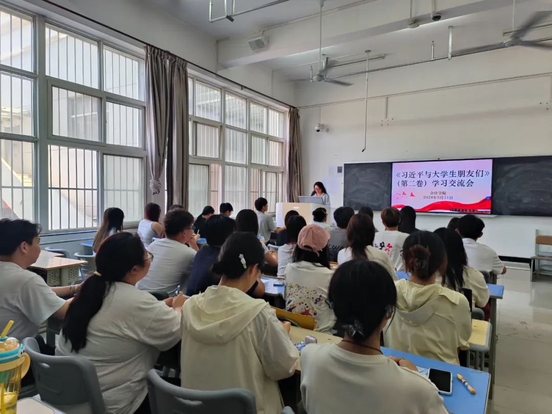 为深入学习贯彻习近平总书记关于青年工作的重要思想,理解习近平总书记对新时代中国青年的重要求和殷切期望,肩负起强国复兴的时代使命。5月21日,会计学院在教学楼122教室开展《习近平与大学生朋友们》(第二卷)的学习交流活动会。会计学院全体学生会干部参会,会议由学生会轮值主席车玉婕主持。