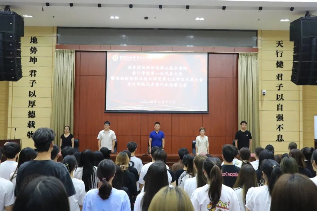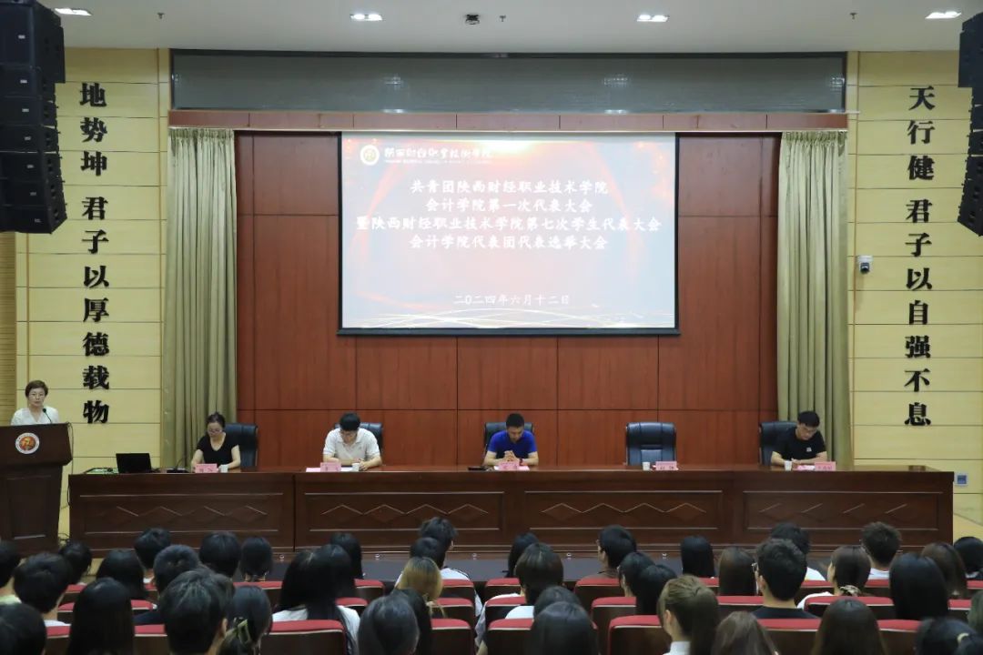 2024年6月12日19点,共青团陕西财经职业技术学院会计学院第一次代表大会暨陕西财经职业技术学院第七次学生代表大会会计学院代表团代表选举大会在学术报告厅隆重召开,全体代表参加会议。共青团陕西财经职业技术学院会计学院委员会筹备组组长张璐、会计学院学生管理科科长赵静、辅导员李飞、王德明出席本次大会。会议由辅导员魏阳主持。