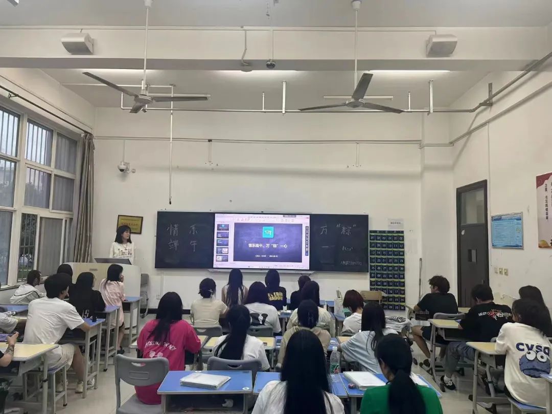 主题班会在以端午节为主题的竞猜游戏中拉开帷幕,在竞猜环节同学们拓宽了人文视野,丰富了传统文化素养。通过宣讲端午节的习俗和历史故事等多种形式,同学们了解端午节蕴含的相关知识,感受我国传统节日的独特魅力,传承端午文化,乐享端午习俗。同学们诵读历代诗词中关于端午节的诗词佳作,一起感受中华民族传统文化的博大精深。随后,各班级同学一起观看了董宇辉端午节小作文视频,在感受传统文化带来的魅力之时,也牢记传统佳节传递出的爱国情愫,不忘家国情怀,奋发砥砺前行,蓬勃青春 ,“粽”情奋斗。最后,端午过后,夏季炎炎,烈日高温,为减少中暑事件的发生,各班级辅导员向同学们详细介绍了中暑的原因、症状及处理方法,增强了同学们的防暑意识和自我保护能力。