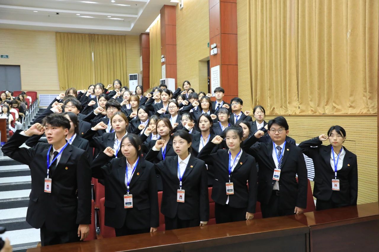 轮值主席阿斯哈带领第七届全体学生会干部进行庄严的入会宣誓。
