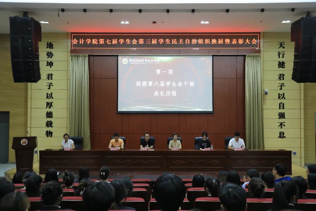 6月25日晚,会计学院第七届学生会、第三届学生民主自治组织换届暨表彰大会在学术报告厅隆重召开。会计学院党总支书记贺适、学生管理科科长赵静、会计学院团委书记张璐、学生管理科副科长刘歆语、团委兼职副书记李飞出席会议。全体辅导员以及会计学院学生会干部、班团干部参加本次大会。会议由会计学院团委兼职副书记魏阳主持。