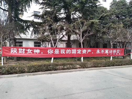 活动结束后,全体学生干部将所占用的区域卫生进行了彻底的打扫,综合楼前只留下同学们的欢声笑语而未留下一片纸屑。随后,他们拉起了内容为“陕财女神,你是我的固定资产,永不累计折旧”的横幅。将专业知识和节日背景紧密结合,用风趣幽默的话语来为我院所有女性教职工和女生送上了最诚挚的节日问候和祝福。