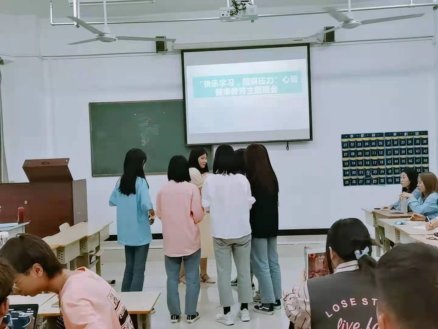 最后,辅导员给学生观看普及“压力知识”,先后播放了3个视频,分别是认识压力,缓解压力和释放压力的拍手操,并带领学生们跟着视频一起做,从而缓解学生心理压力,使学生对心理健康的内涵有全面的了解。