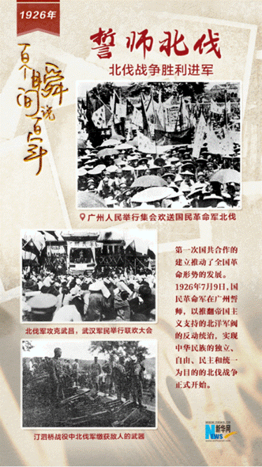 第一次国共合作的建立推动了全国革命形势的发展。1925年7月1日,广东革命政府在广州成立,组建国民革命军。1926年7月9日,国民革命军在广州誓师,以推翻帝国主义支持的北洋军阀的反动统治,实现中华民族的独立、自由、民主和统一为目的的北伐战争正式开始。