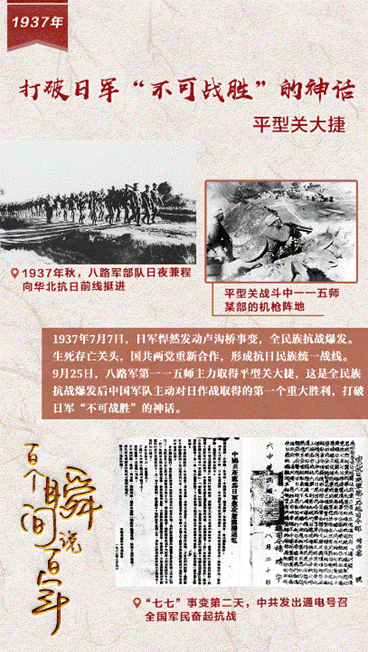 1937年9月25日,八路军第一一五师主力在平型关伏击日军,首战告捷,一举歼灭日军1000余人,击毁日军汽车100余辆,缴获一批辎重和武器。接着,八路军三个师又配合国民党军队进行忻口战役,相继取得雁门关伏击战、夜袭阳明堡日军机场等胜利。忻口战役历时20余天,是华北战场上规模最大、战斗最激烈的一次战役,也是国共合作抗日配合得较好的一次战役。