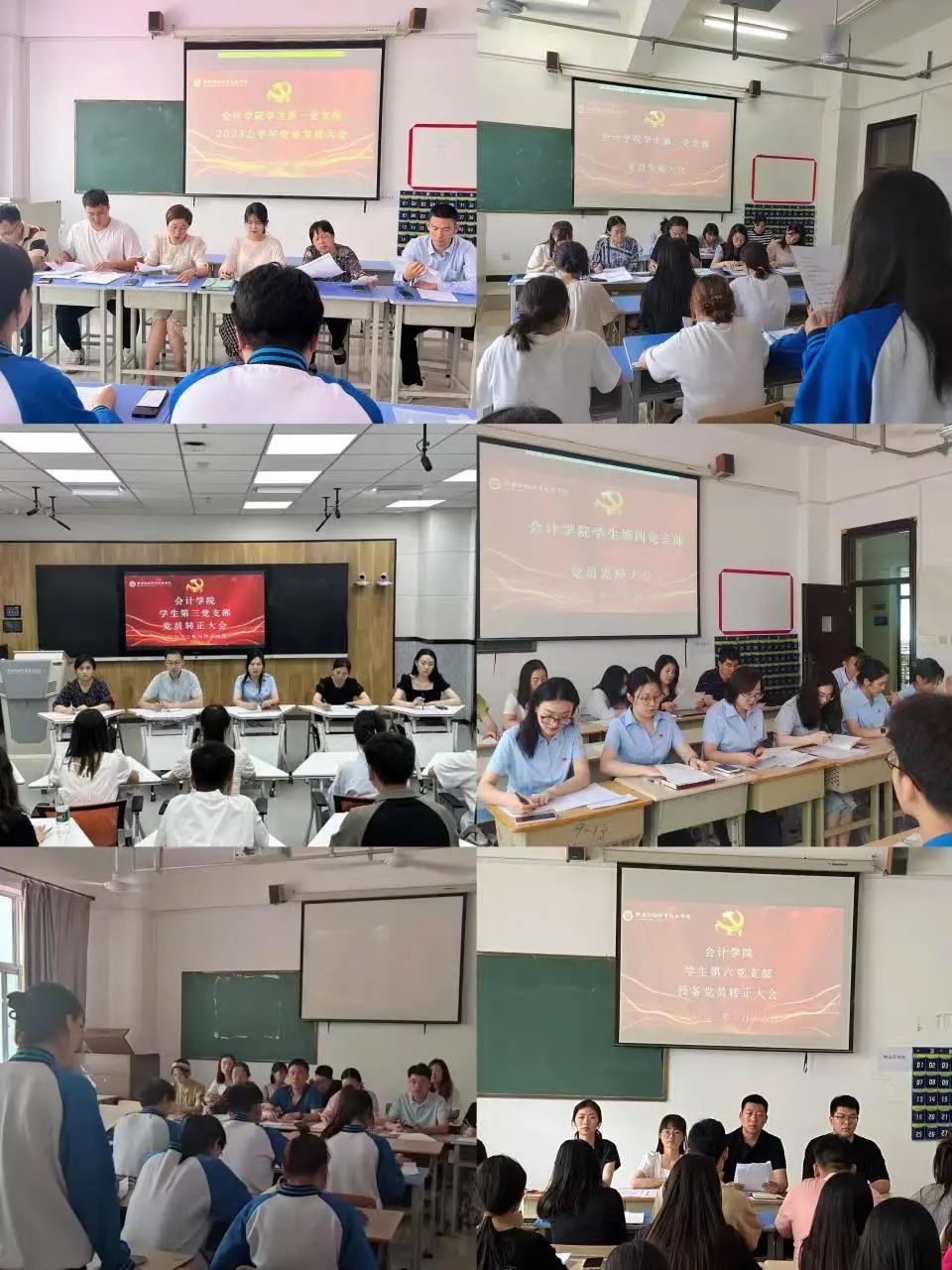 2023年6月13日和6月16日,会计学院6个学生党支部在综合楼分别召开了2023年上半年学生党员发展大会和转正大会。学院党委组织部师丽珍、曹敏姿列席了部分支部会议。会议由各学生支部书记主持。