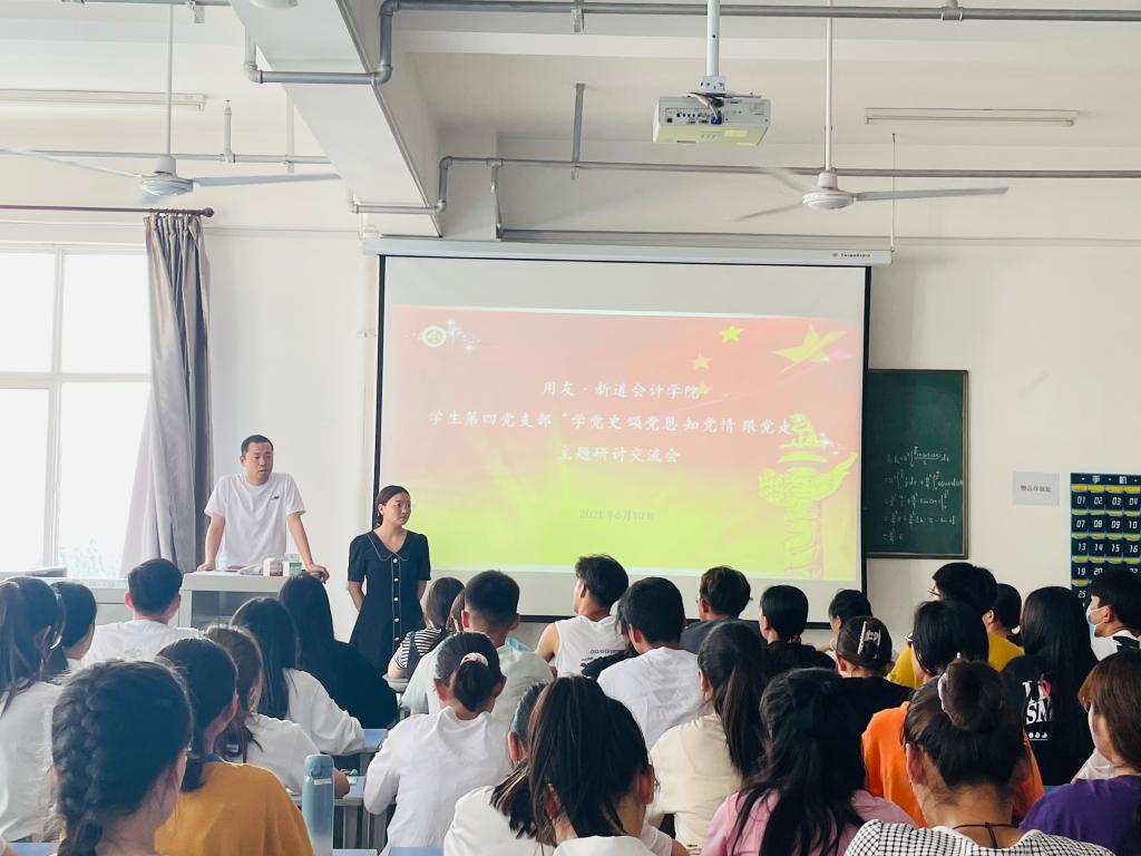 6月10日,用友·新道会计学院党总支组织入党积极分子和发展对象开展“学党史 颂党恩 知党情 跟党走”主题研讨交流会。会议由各党支部书记主持。