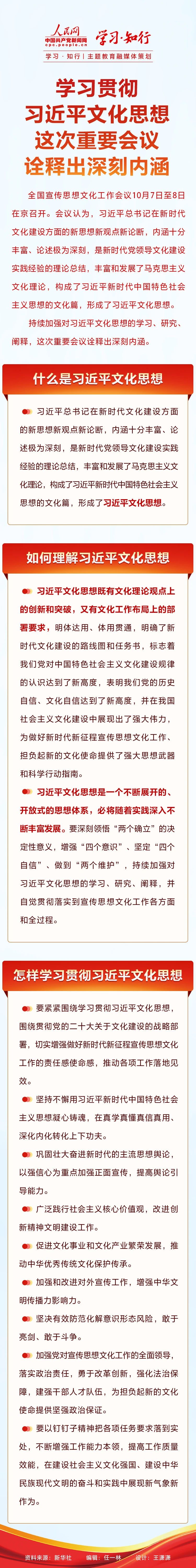 10月7日至8日,全国宣传思想文化工作会议在北京召开。这是党中央决定召开的一次重要会议。这次会议最重要的成果,就是正式提出和系统阐述习近平文化思想,在党的宣传思想文化事业发展史上具有里程碑意义。