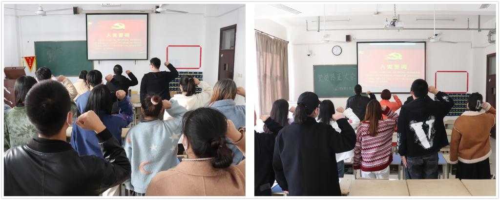在召开学生发展大会时,会议严格按照党组织接收预备党员程序,讨论关于接收陈新源等83名同志为预备党员的问题,经支部有表决权的党员无记名投票一致通过,同意接收陈新源等83名同志为中共预备党员。在召开学生转正大会时,会议严格按照组织程序,讨论关于胡红盼等78名同志是否能按期转正的事宜,经支部有表决权的党员无记名投票一致通过,同意对胡红盼等78名预备党员预备期满予以按期转正。最后各支部书记向所有表决通过的学生党员表示衷心祝贺,并希望全体党员不忘入党初心,严于律己,不断锤炼党性修养,将初心薪火相传,让使命勇担在肩,以更高的标准要求自己,用青春和热血书写更加辉煌的篇章。