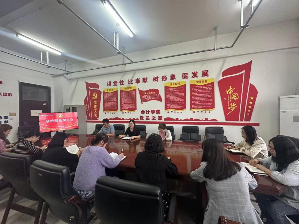 按照党中央部署及省委教育工委、学院党委要求,9月20日,会计学院党总支在教学楼三楼会议室召开政治理论学习会。会计学院党总支委员和各基层党支部书记参会。会议由会计学院党总支副书记李妙娟主持。