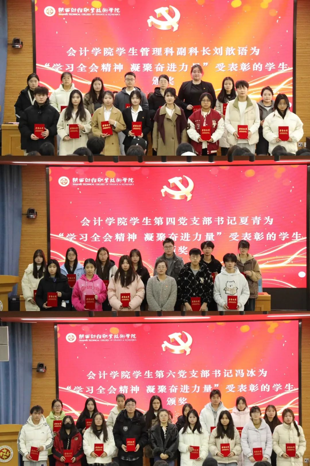 2024年12月6日下午,会计学院党的二十届三中全会精神专题学习会暨“学习全会精神 凝聚奋进力量”答题活动表彰大会在继续教育培训厅隆重举行。此次会议由党总支组织委员赵静主持,会计学院党总支书记贺适、团委书记兼学生第五党支部书记张璐、学生管理科副科长兼学生第二党支部书记刘歆语、学生第四党支部书记夏青、学生第六党支部书记冯冰以及部分学生党员和积极分子共同参与,旨在深入学习贯彻党的二十届三中全会精神,表彰先进,激励广大学生党员积极进取。