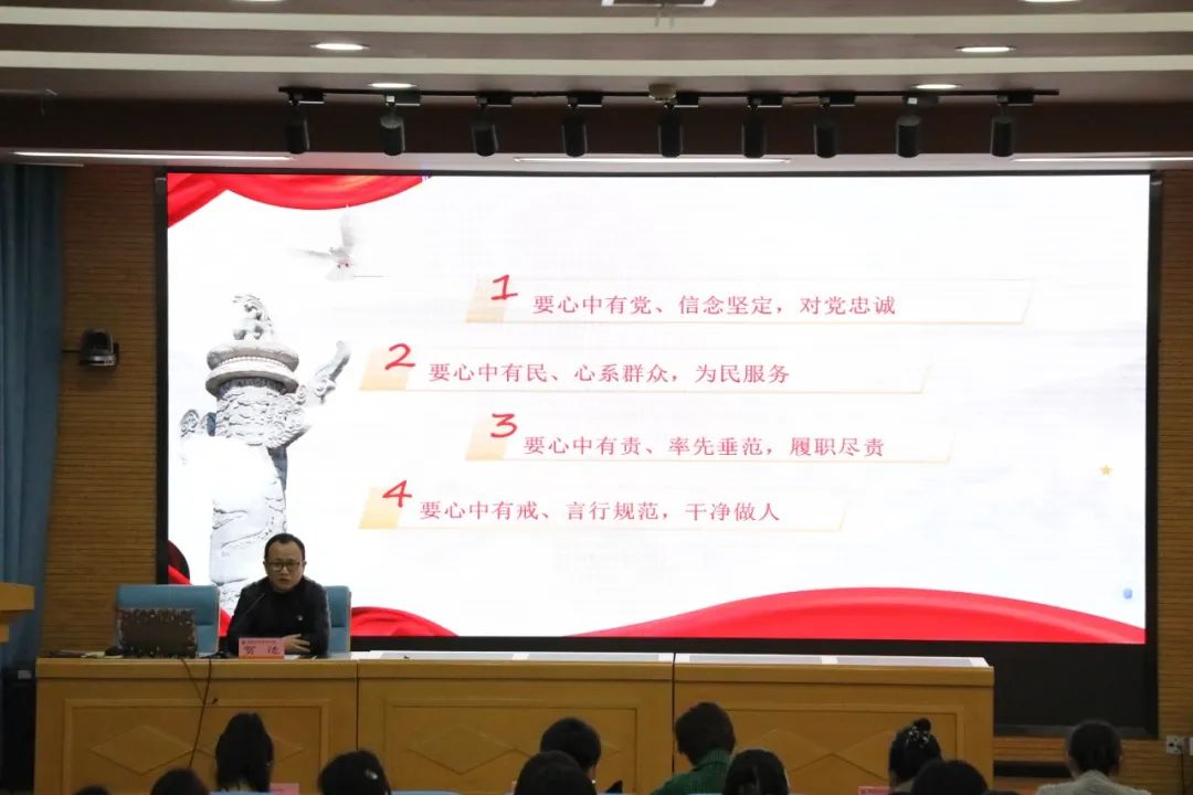 接下来,贺适以《坚守初心使命,争做新时代合格党员》为主题为大家讲授了一堂意义深远的党课。贺书记从“心中有党,信念如磐,对党忠诚不渝”“心中有民,情系大众,服务人民至上”“心中有责,以身作则,担当使命在肩”“心中有戒,言行有度,清正廉洁立身”四个维度深入剖析。他结合实际案例,深入浅出地阐述新时代合格党员的标准与要求,为党员们明晰了前进方向,激励大家在学习、工作与生活中积极践行使命担当,争做先锋表率。党员们认真聆听,不时记录,沉浸在浓厚的学习氛围中。