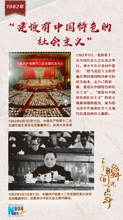 1982年9月1日至11日,党的第十二次全国代表大会在北京举行。邓小平在开幕词中响亮提出:“把马克思主义的普遍真理同我国的具体实际结合起来,走自己的道路,建设有中国特色的社会主义”。“建设有中国特色的社会主义”的重大崭新命题的提出,回答了进入改革开放新时期后走什么样的道路这一全党和全国人民最为关心的重大问题,它成为指引改革开放和社会主义现代化建设的伟大旗帜。