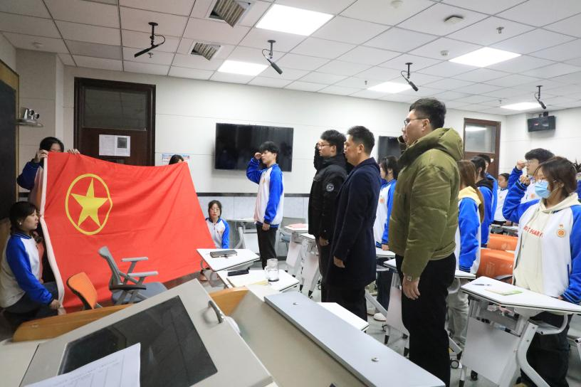 最后,各团支部全体成员面对团旗举起右拳庄严宣誓。