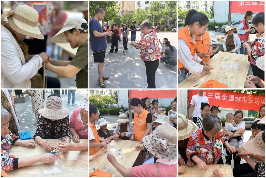 在五彩绳编织过程中同样的热闹非凡,志愿者们提前准备了五彩丝线,耐心地指导居民编制手绳,五彩丝线在指尖穿梭,大家精心编制着对自己和家人健康平安的美好祈愿,也编织出了邻里间的温情。一条条包含深情的五彩绳,成为端午安康的独特象征。