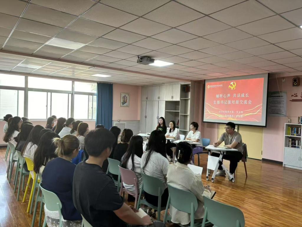 为进一步加强入党积极分子的培养教育,提升其政治素养与思想认识,引导他们端正入党动机,2025年4月29日下午,会计学院学生第一党支部在尚德书院“一站式”学生社区召开《倾听心声,共话成长——支部书记面对面交流会》,为2023级入党积极分子带来一堂意义深刻的思想教育课。本次活动由会计学院学生第一党支部书记赵静主持。