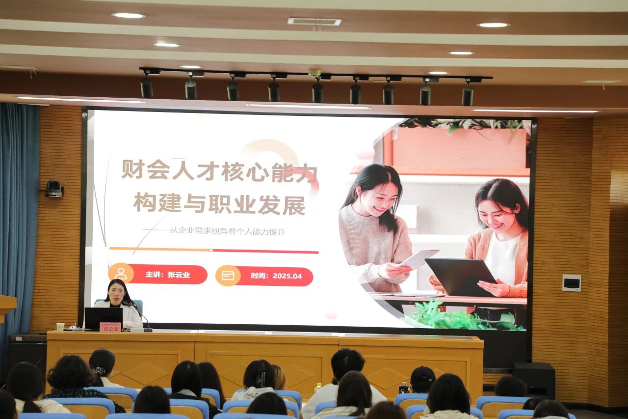在讲座中,张云业从用人单位视角出发,提出新时代财会人才的四大核心能力:一是专业基础与学习力。她强调,考取初级会计、注会等证书是职业“敲门砖”,同时需关注税收合规、智能化财务系统筹前沿趋势;二是综合素质与情商。沟通能力、团队协作及问题解决能力比单纯的专业技能更重要;三是目标规划与执行力。要明确职业路径,制定阶段性目标,并通过每日复盘实现自我提升;四是价值观与责任感。她指出,财务工作者必须将诚信视为生命线,同时注重情绪管理与职业健康,才能实现可持续发展。