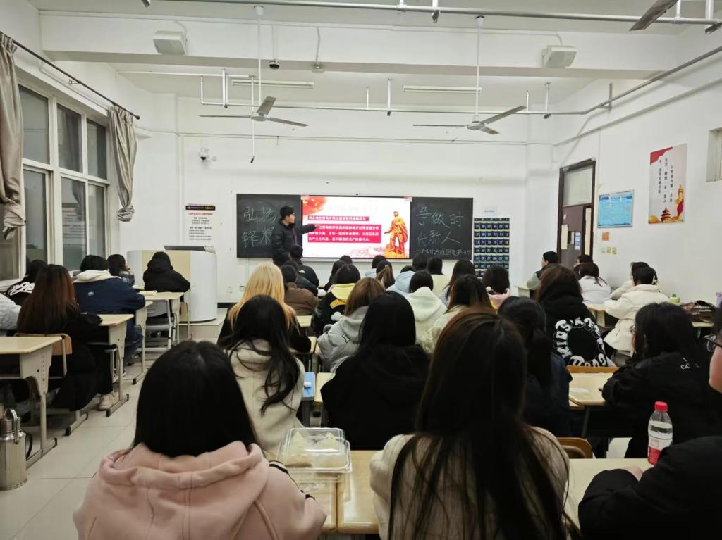 活动期间,各团支部组织学生观看了雷锋事迹纪录片《雷锋》,通过影像资料加深学生对雷锋精神内涵的理解,提升思想道德修养。随后,各团支部书记带领班级同学进行雷锋精神宣讲,分享自己对雷锋精神的理解和感悟,进一步激发了学生的思考和共鸣。最后,各团支部开展了雷锋精神知识竞答活动,围绕"为什么要学习雷锋精神"等问题展开讨论,培养了学生的责任感和奉献精神。
