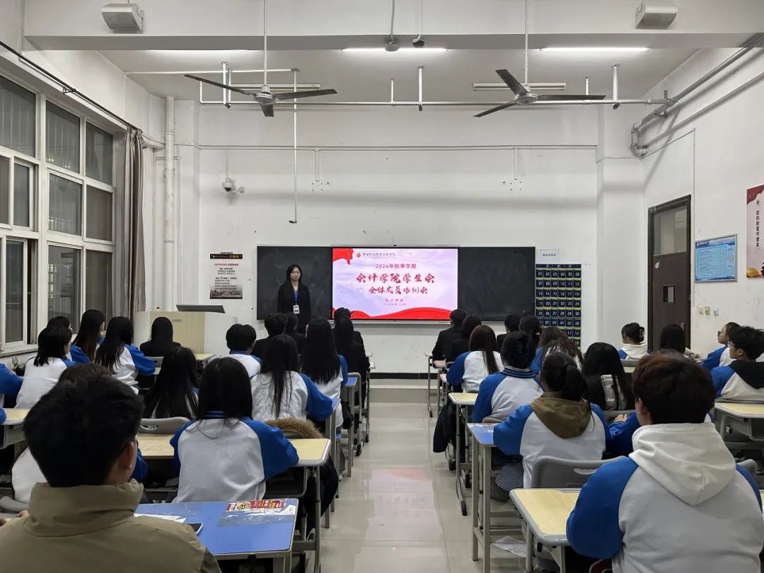 为深化新时代学联学生会改革建设,深入学习贯彻党的二十届三中全会精神,进一步推动学联学生会工作高质量发展,12月2日,会计学院在教学楼117教室召开了2024年秋季学期学生会全体成员培训会,学生会全体成员参加本次会议,轮值主席吕思莹主持。