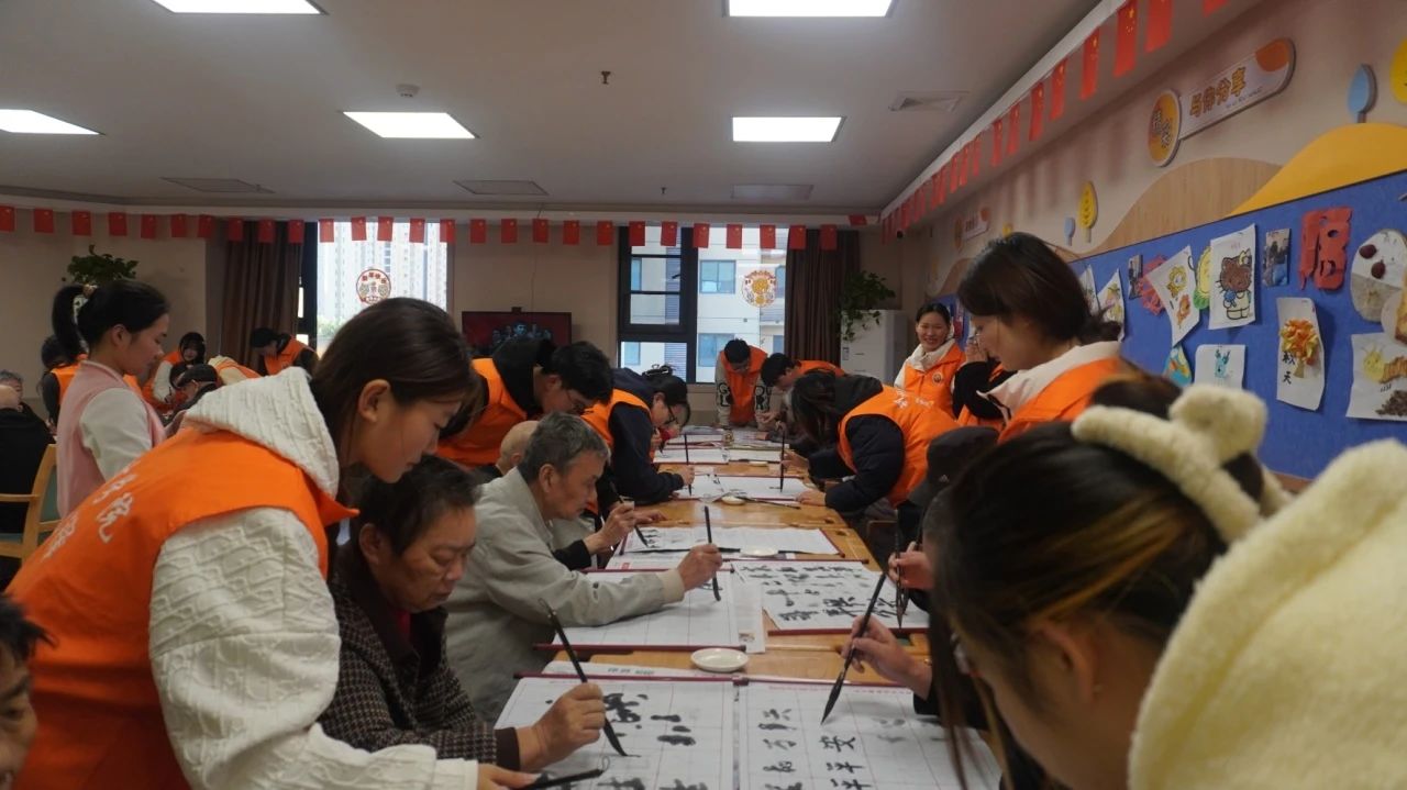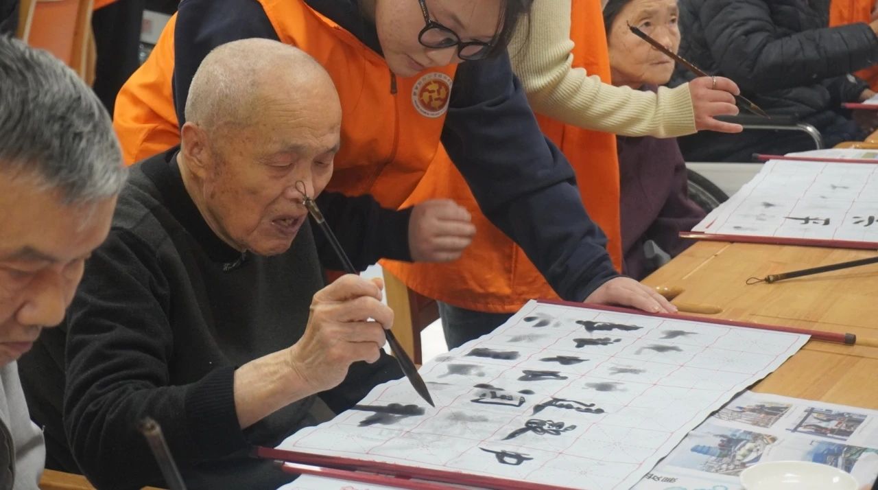 随后,在书法创作环节中,志愿者们为老人们详细讲解了毛笔字的基本笔法、结构、书法艺术的悠久历史和深厚文化内涵。老人们听后,纷纷拿起毛笔,准备开始自己的书法创作。他们全神贯注地书写着每一个字,尽管握笔的手有些颤抖,但那份专注和认真却让人感动。志愿者们在一旁耐心观察,不时给予鼓励和指导,让老人们感受到了来自年轻人的尊重和关爱。