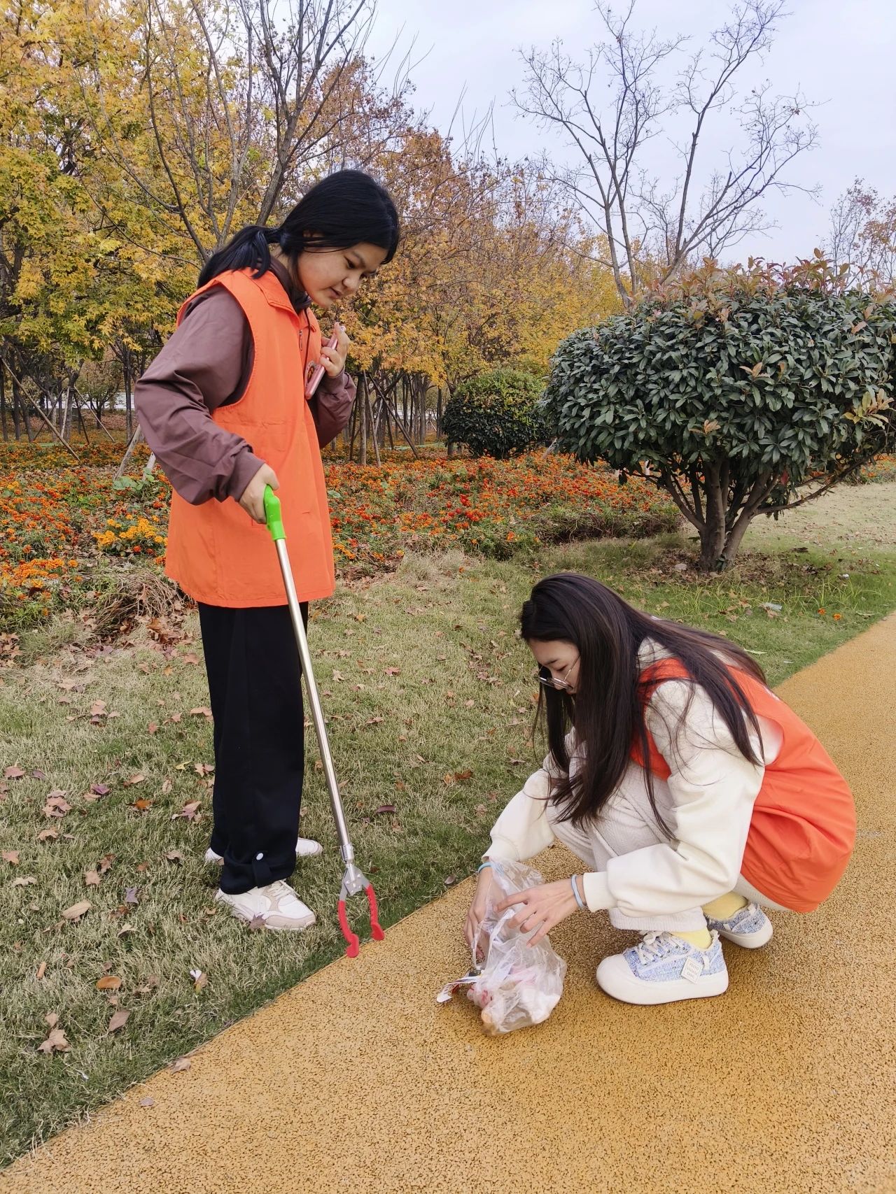 到达公园后,志愿者们地毯式推进,对不同区域垃圾进行捡拾。先后清理了公园路面、绿化带和湖面附近的垃圾,并对树叶、废纸、烟头、啤酒瓶等垃圾进行分类并投放。活动过程中,志愿者们发扬不怕脏不怕累的精神,眼睛盯着地面,搜寻可以捡拾的垃圾,将塑料袋、烟蒂、纸屑、酒瓶等捡起放入垃圾袋中。不到一小时,每个人的垃圾袋中都已“战果累累”,同时向路过的游客宣传环保知识。经过志愿者们不懈的努力后,咸阳湖周边的环境焕然一新。
