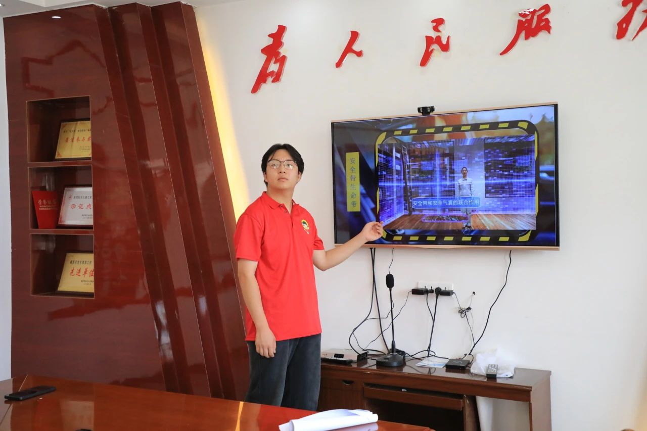 随后,实践团开展课“安全自护我知道”主题课程,进一步提高了青少年的自救能力,切实筑牢生活安全“防护网”,为青少年平安健康成长保驾护航。在课程开展时,实践队队员向小朋友们详细展开安全知识讲解,强调了在校园内外安全教育,结合安全自护教学视频,为小朋友们生动讲解生活中潜在的危险,在校园生活中不做施暴者不做旁观者,在校外生活中时刻警惕家庭用电安全,户外运动安全和远离自然灾害技巧,使小朋友们掌握生活安全技巧规避危险的技能,增强小朋友们自我保护能力。接着,实践队员们结合当下洪涝灾害,用通俗易懂的语言,妙趣横生的互动,深入浅出地讲解了安全自救的关键要点,告知小朋友们一定要注意生活中的安全隐患要点,接着引导小朋友们在教学视频中正确树立生活安全自救,并以知识问答的方式告诫小朋友们远离危险并提升小朋友们自我保护意识。