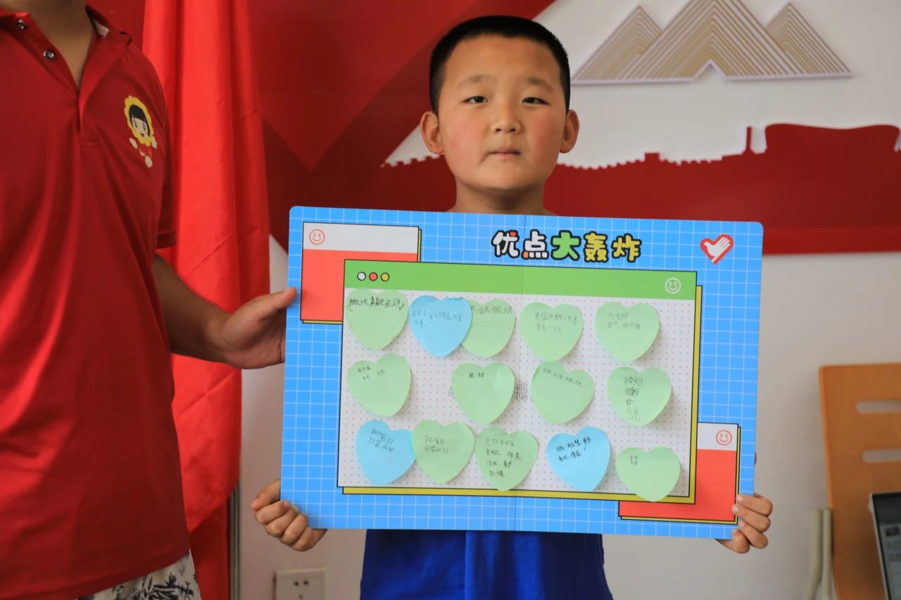 接着,孩子们在志愿者的指导下,用“快乐瓶”学习单表达自己喜悦情绪的等级。通过这个环节,孩子们不仅加深了对喜悦情绪的认识,还学会了通过绘制“距离信号灯”的图片并用语言来表达自己与人交往的可接受距离,并表达了如果有人越过安全距离之后自己的情绪变化。最后,实践团的志愿者让孩子们的用“心形贴纸展示墙”表现自己对别人说出自己优点的情绪,并希望孩子们能够将在活动中能够感受到快乐与喜悦,并将学到的情绪管理技巧应用到日常生活中去。
