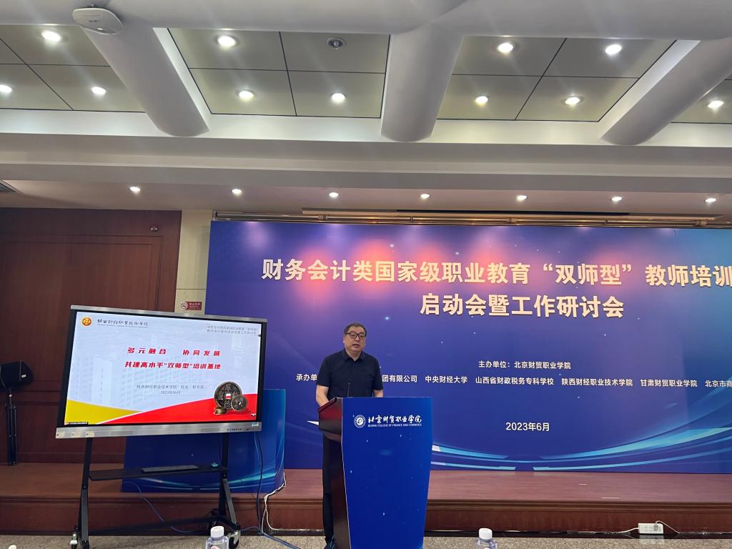 2023年6月16日,财务会计类国家级职业教育“双师型”教师培训基地启动会暨工作研讨会在北京财贸职业学院成功举行,教育部教师工作司、北京市教委领导及基地六家核心成员单位领导和相关专家出席了启动会。