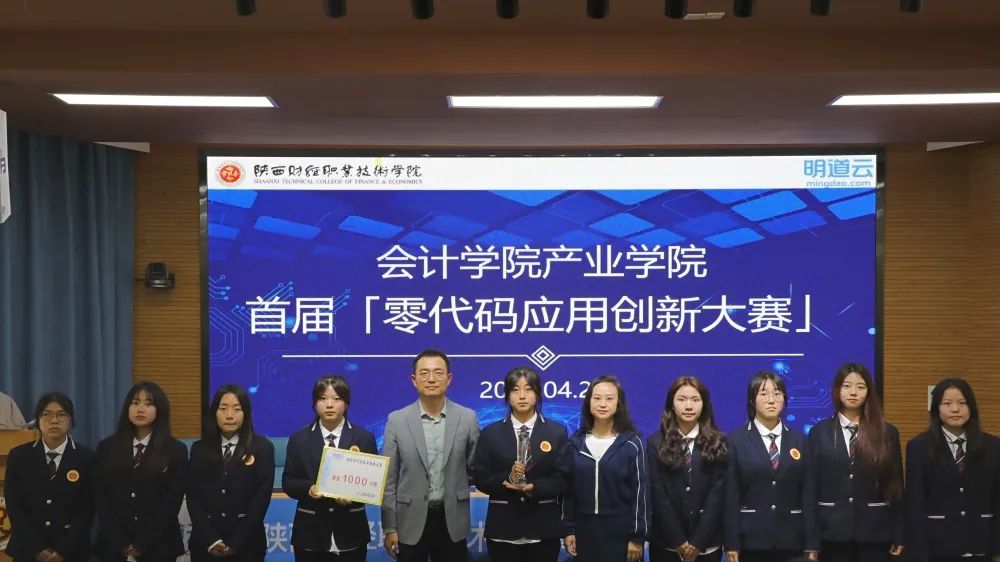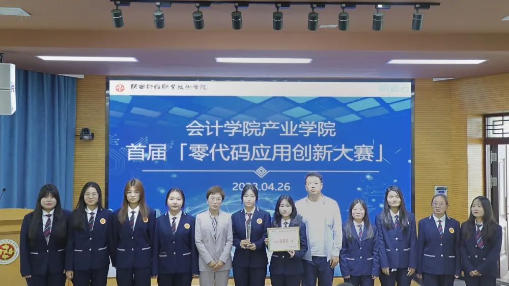 2023年4月26日下午,陕西财经职业技术学院会计学院与上海万企明道软件有限公司共同举办会计学院产业学院首届“零代码应用创新大赛”。会计学院院长常茹、党总支书记贺适、学生科科长赵静、“互联网+”大赛指导教师崔尚勇,以及明道云西北区域负责人李江,明道云西北运营中心李莎莎,明道云高级咨询顾问张雨豪担任评委。大赛由会计学院产业学院负责人薛媛主持。