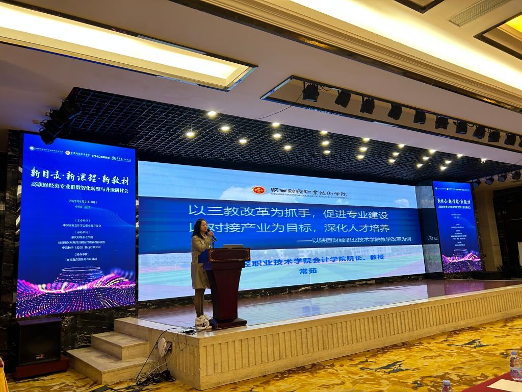 本次研讨会主要围绕适应数字经济发展,推进财会类专业转型升级、课程体系重构与数智化财经教材建设展开。会上,常茹以“以三教改革为抓手,促进专业建设;以对接产业为目标,深化人才培养”为主题,分别从对接职业教育发展新趋势、重构课程体系完善课程资源、组建教学创新团队提升双师技能、融通岗课赛证落实教学改革和深化校企合作创新人才培养等方面作了精彩报告。